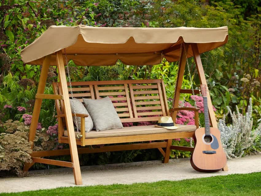 Когда конструкция будет собрана, ее нужно отшлифовать, рекомендуется использовать шлифовальную машинку, это сэкономит время и повысит качество проводимых работ. Далее скамья окрашивается и покрывается лаком. После высыхания ее можно будет использовать по назначению.