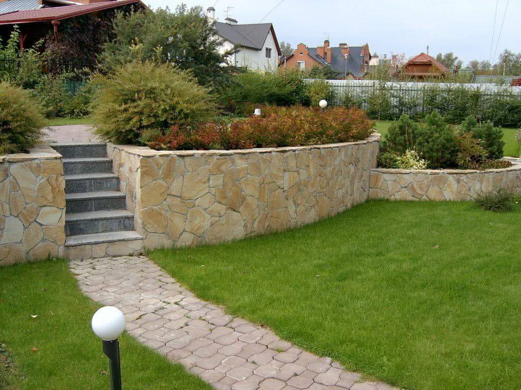 Очень красиво смотрятся стены из камня. Самые долговечные породы — магматического происхождения (гранит, базальт, сиенит). Стены можно также возвести из менее долговечных песчаников и известняков. Поскольку эти породы камня пористые и легко впитывают воду, со временем они обрастают мхом и могут расслаиваться. Тем не менее, такой «налет» в садах желаем.