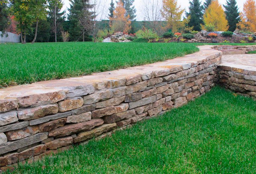 Подпорные стенки из камня – конструкции со всех позиций предпочтительные. Во-первых, камень – материал прочный с огромным сроком эксплуатации. Во-вторых, это великолепный декоративный элемент, который впишется в любой тип ландшафтного дизайна. Но и каменной конструкции есть и минусы: