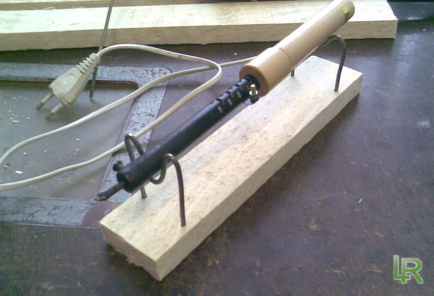 Такая подставка не требует значительных финансовых вложений, однако облегчает работу с паяльником.