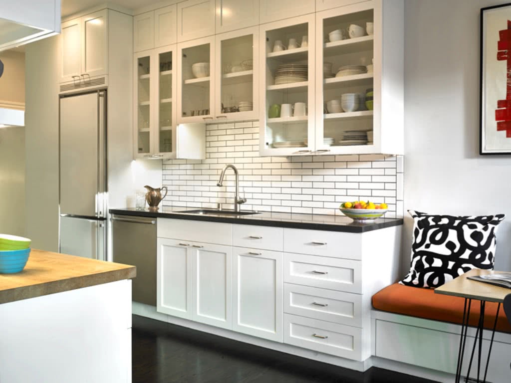 С классическими пастельными тонами отлично сочетаются различные оттенки розового, красного, синего, зеленого, бордо, сиреневого, салатового. Интересно смотрятся контрастные цвета, их объединение позволяет создать упор на ту или иную область кухни, сделать ее оригинальной.