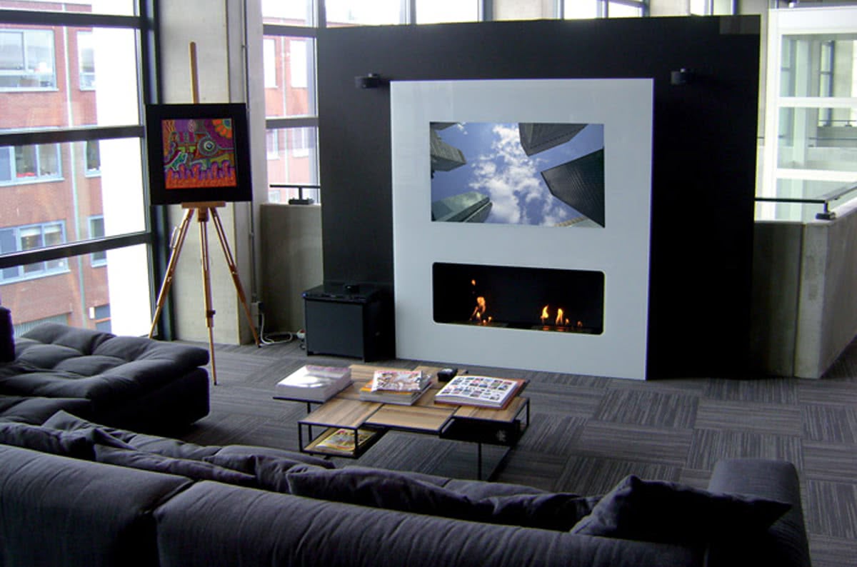 Полке под ТВ не место рядом с нагревательными приборами. Это категорически запрещается. Помимо батарей, нагревательными приборами считаются плиты, духовые шкафы, камины и т. п. Самое популярное место для установки полки под телевизор — ниша.