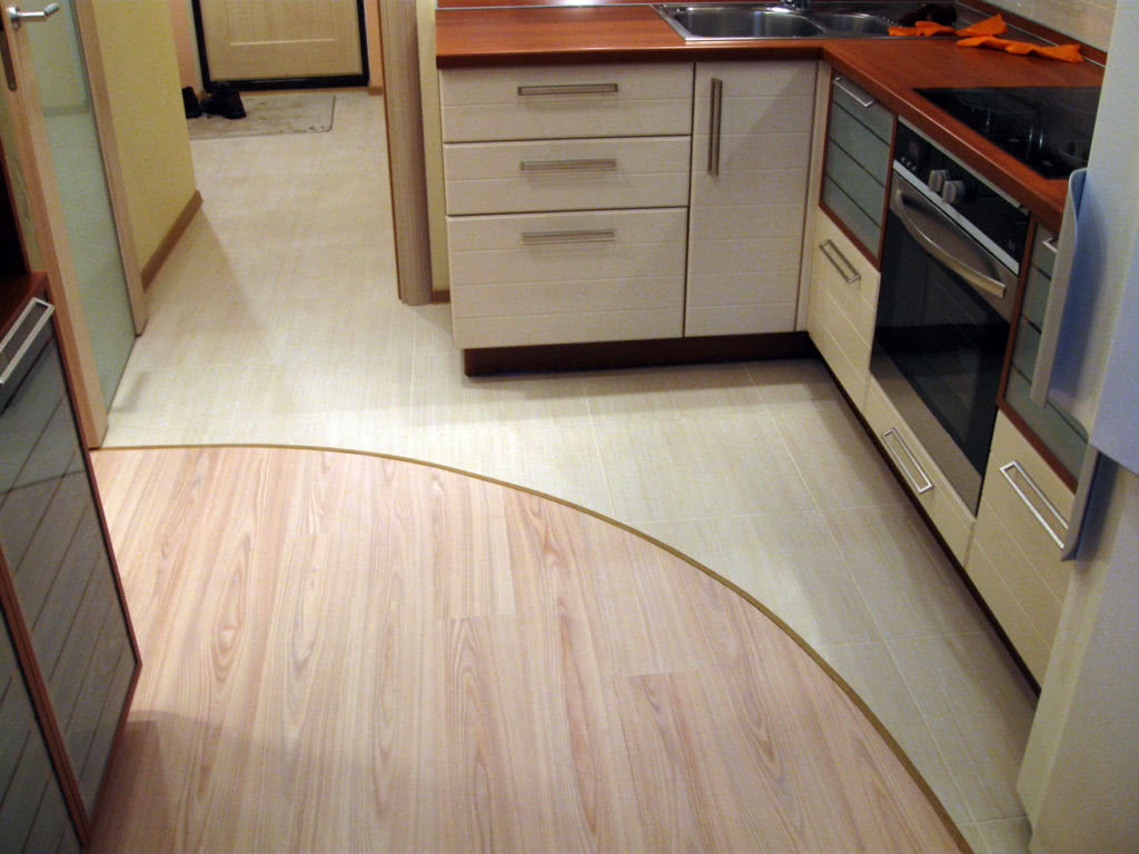 - На кухонный пол постоянно попадает влага, загрязнения и даже жир, поэтому покрытие должно быть действительно простым в уборке и стойким перед влагой;