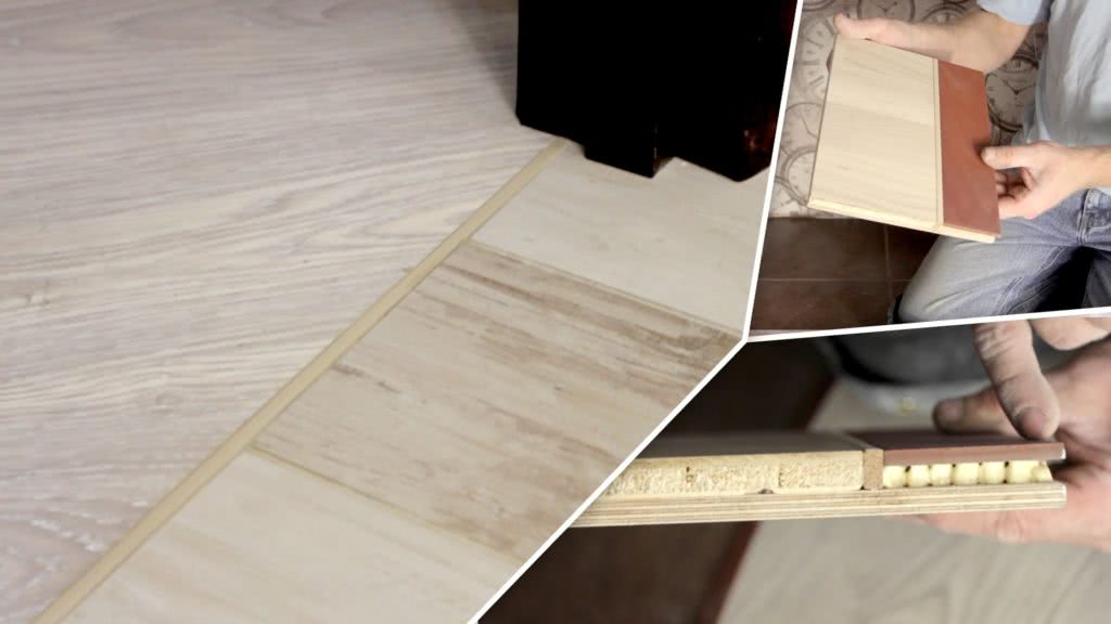 При соединении разнородных материалов возникает сложность с тем, что древесные структуры (паркет, половая доска, ламинат) реагируют на колебания температурно-влажностных показателей и изменяют свои габаритные размеры. Вследствие этого впритык различные покрытия размещать нельзя, необходимо всегда оставлять компенсационный зазор.