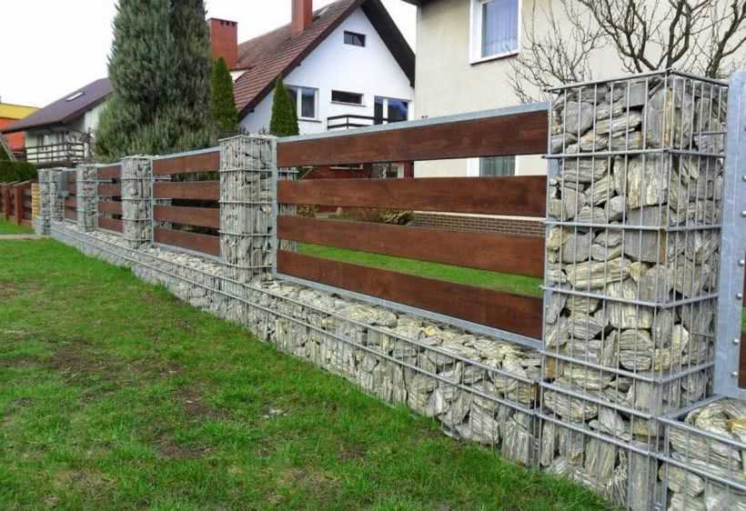 Последователи необычных идей выберут нестандартный габион, это стальная сетка, заполненная камнями разной величины и формы. В результате вы огородитесь высокопрочным уникальным «защитником».
