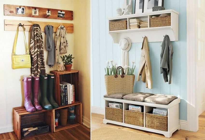 Также вместо шкафа могут быть использованы полки или крючки. Крючки занимают наименьшее пространство и, как правило, используются только тогда, когда меблировка прихожей совсем не возможна.