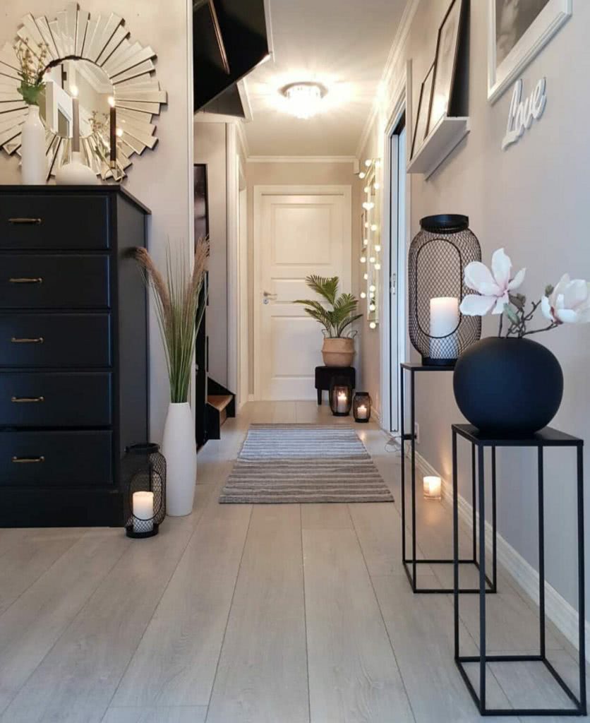 Вы также можете использовать прихожую для ваших любимых мероприятий. Если вы коллекционер произведений искусства, сделайте коридор небольшой галереей картин и скульптур, которые каждый раз будут пробуждать теплые воспоминания, когда вы приходите или покидаете свой дом.