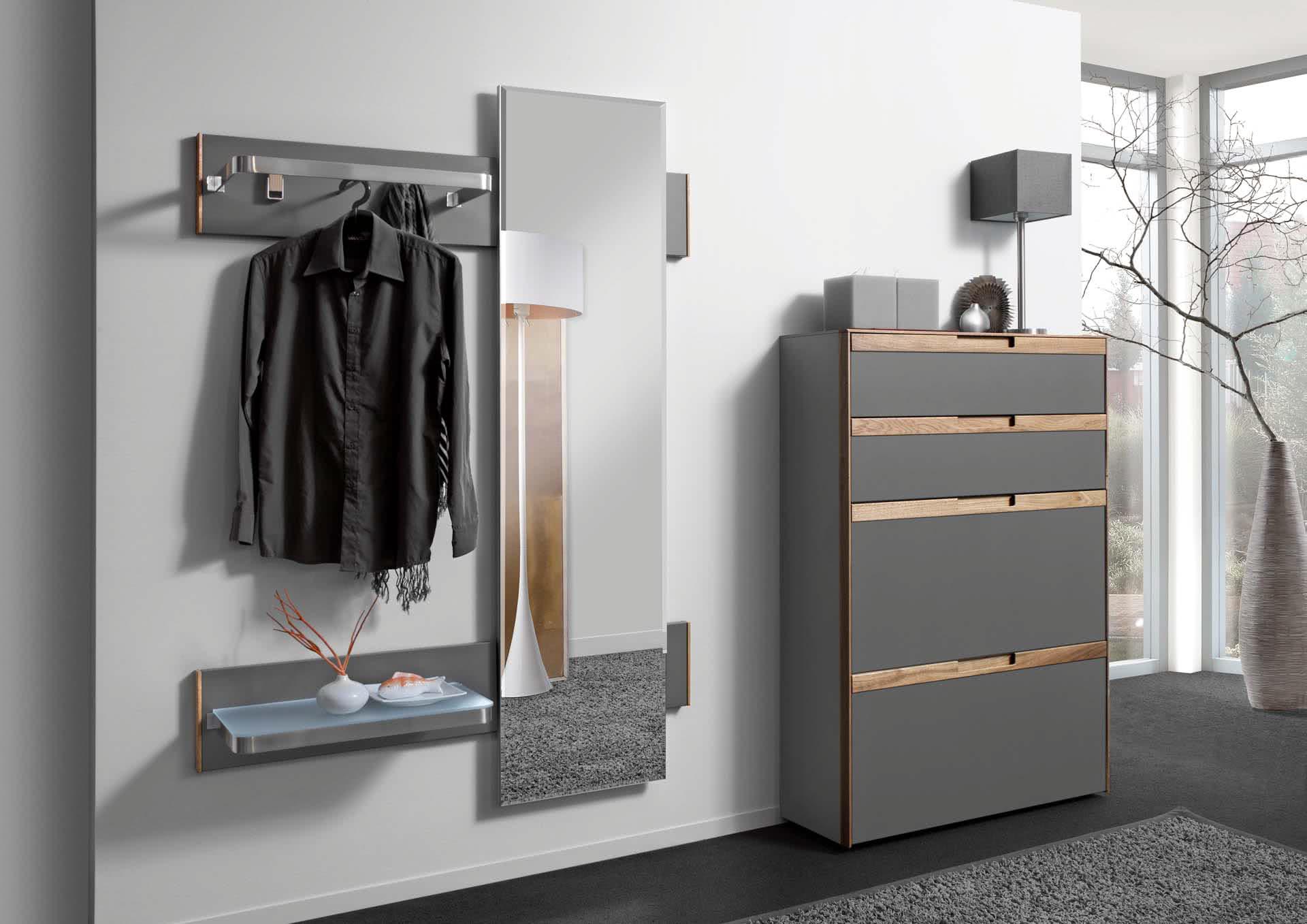 Если прихожая представляет собой очень узкий коридор, придётся ограничиться навесной вешалкой, полкой для обуви и полкой для головных уборов. Для хранения сезонных вещей можно приобрести модуль-антресоль. Ясно, что чем размеры прихожей больше, тем больше модулей можно в ней разместить.