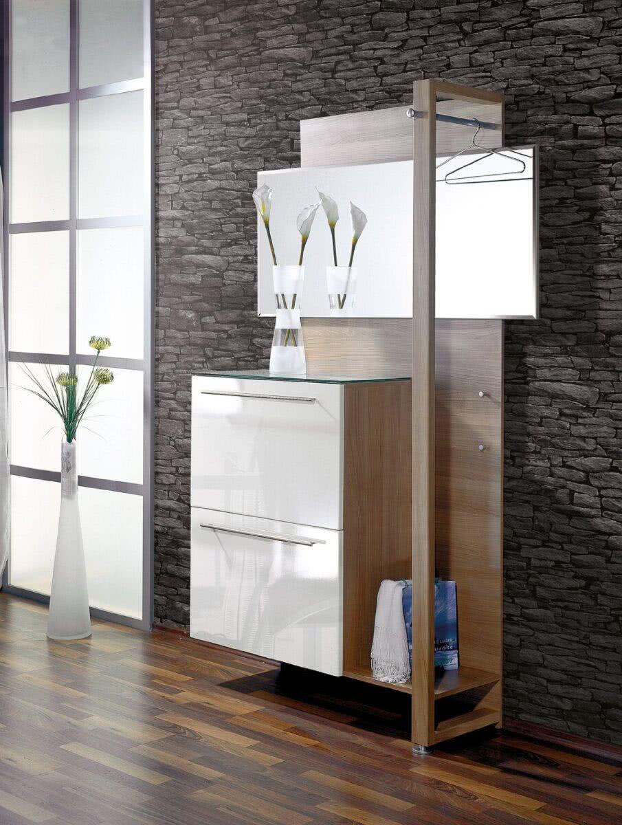 К данному типу прихожих обращаются в случае ограниченности пространства или если жильцов в квартире немного и нет необходимости в хранении множества вещей. Любой вариант предполагает минимальный мебельный набор. Обычно, это панель с крючками или вертикальная вешалка, тумба и зеркало. Без шкафа можно и вовсе обойтись или подобрать небольшую узкую модель.