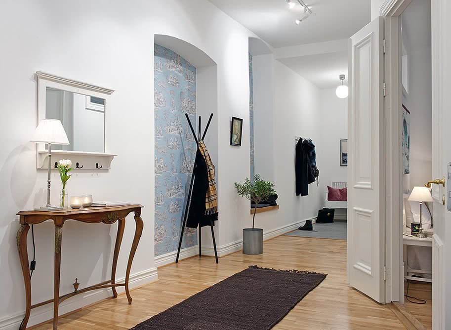 Абсолютно не стоит иметь какую-либо мебель в вашем коридоре, если у вас нет лишнего места: вместо этого попробуйте использовать цвет и освещение, чтобы создать приятный эффект.