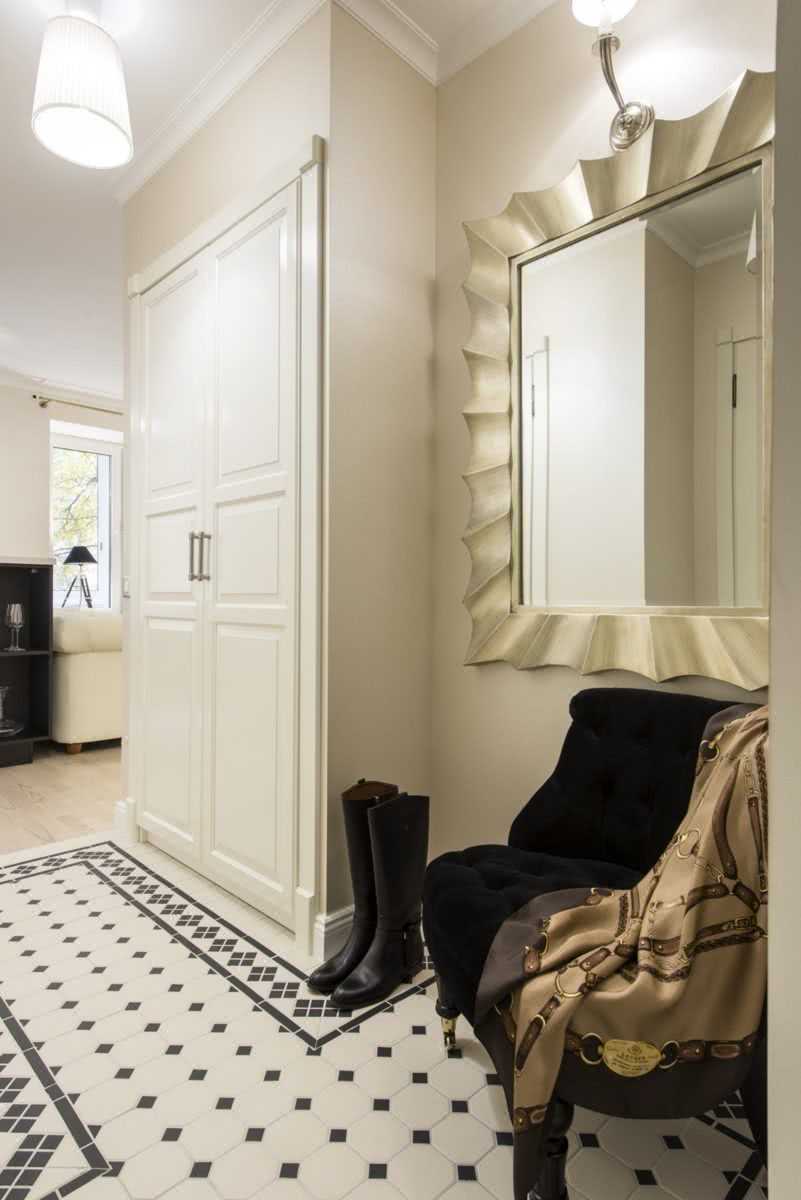 Выбор мебели и дизайна напрямую зависит от площади помещения. Маленькие прихожие в квартире требуют использования в отделке светлых тонов – это поможет визуально расширить пространство. Сюда лучше всего подойдет стиль минимализм, где будут полностью отсутствовать лишние детали, не несущие функциональной нагрузки. Мебель следует выбрать корпусную. Если же площадь совсем мала, то рекомендуется оставить только базовые элементы, такие как вешалка, полка для обуви и зеркало. При этом обязательно нужно оставить свободное пространство для коридора.