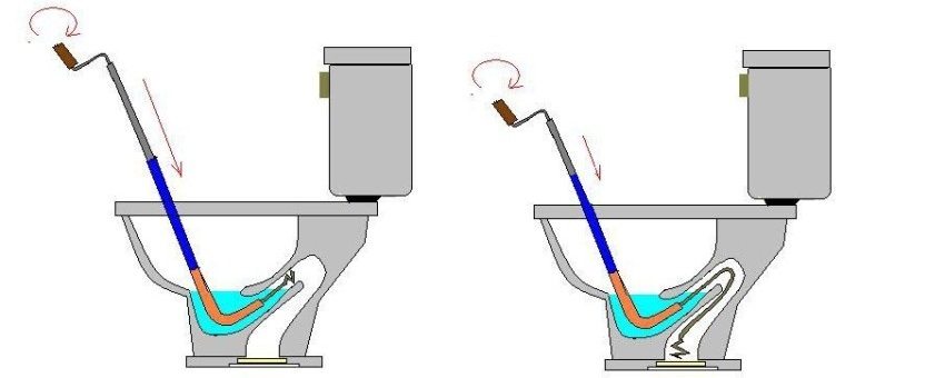 Предполагают устранение препятствия в трубе с помощью мускульной силы и различных приспособлений.