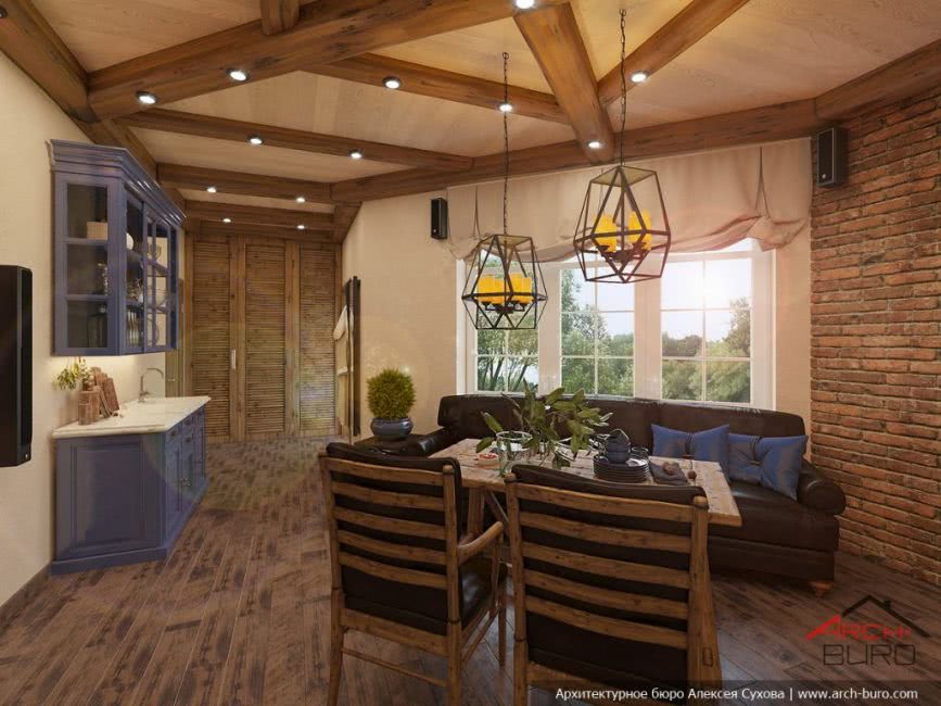 Необязательно при оформлении ограничиваться каким-то конкретным стилем. Многие из них хорошо сочетаются между собой. Но создавая проект бани, следует заранее и задуматься о том, чем она будет наполнена. Тогда уже и выстроится представление о том, какой лучше стиль использовать и какими элементами декора дополнить помещение.