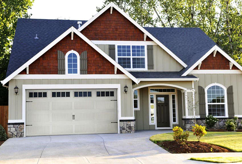 Обычно в типовых проектах домов с гаражом и мансардой предусматривается кровля, одновременно покрывающая основное здание и пристройку в виде гаража. Существуют варианты, у которых одно из мансардных помещений обустраивается над гаражом. Сразу можно предположить, что для таких зданий подойдет любой тип кровли, это наглядно отображено на фото проектов домов с гаражом на 2 машины. Как показывает практика, некоторые варианты экономически необоснованы, поскольку требуют значительных финансовых затрат. Кроме того, некоторые типы конструкции нельзя устраивать в определенном климатическом поясе из-за большой высоты строения.
