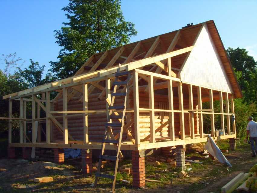 Технология кладки круглого бруса при возведении пристройки к дому: