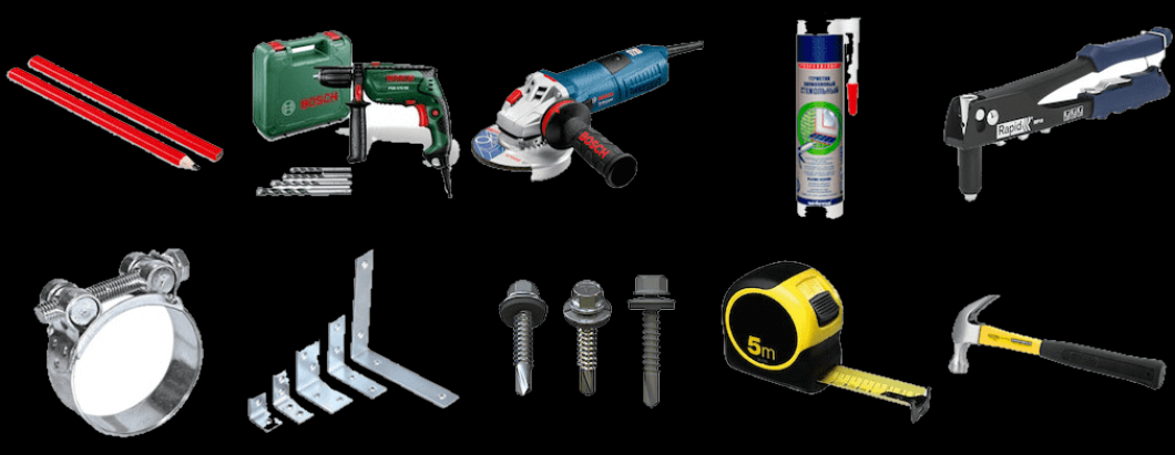 Гидроизоляция дымохода на крыше из металлочерепицы требует подготовки следующих инструментов и материалов: