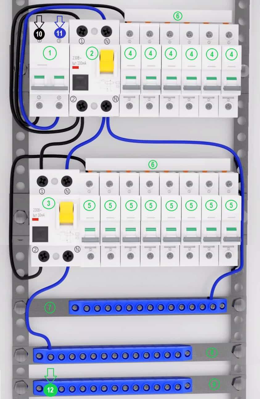 - УЗО от поражения током (16-40А) на каждой линии потребления.