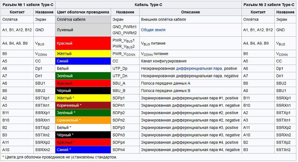Схема USB разъема зависит от спецификации этого интерфейса его типов
