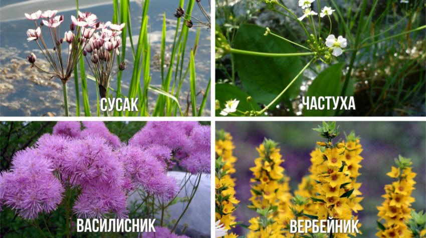 - растения для воды в специальных горшках, растения для прибрежной зоны.