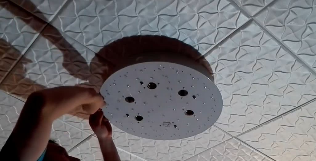 Если на потолке остался крючок от старой люстры, его удаляют, он не понадобиться. В комплекты светодиодных, всегда входят кронштейны для крепления к потолку, вот их и следует устанавливать