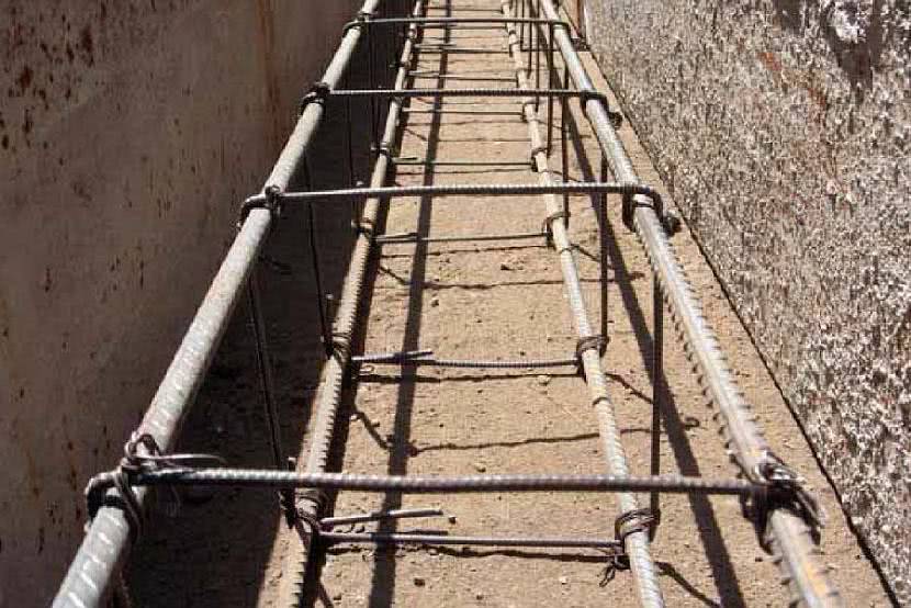 Лента испытывает действие двух основных сил. Одна из них давит сверху (нагрузка от дома), другой силовой вектор выталкивает ленту вверх (сопротивление почвы + пучение грунта). Чтобы сбалансировать это явление в массиве монолита делают два горизонтальных пояса из арматурных стержней.
