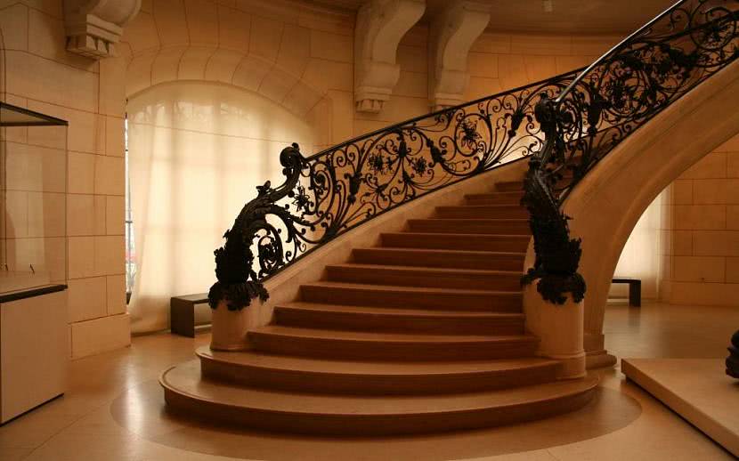 Монолитная лестница с кованными периламиИсточник topoboi.com