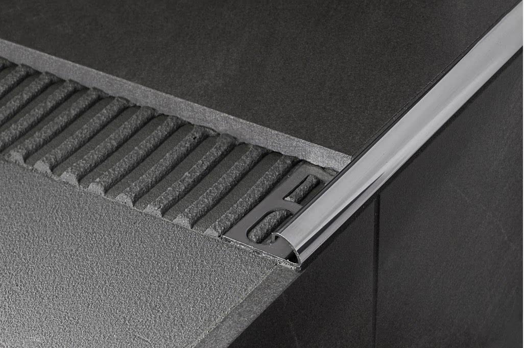 Отделка края ступени бетонной лестницы, облицованной плиткой