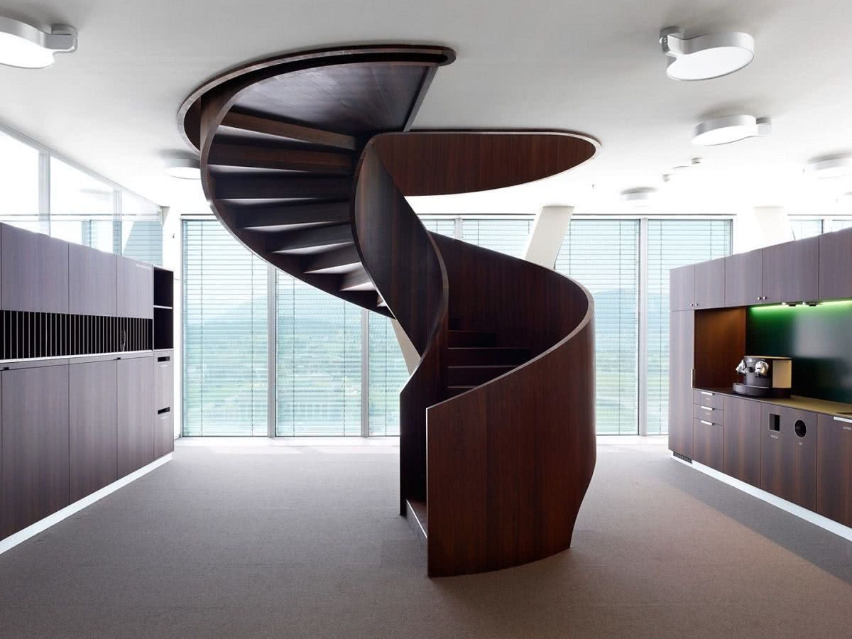 Общая площадь классической вариации винтовой лестницы не превышает одного квадратного метра, вследствие чего она может быть установлена даже в небольших помещениях. Особенностью такой лестницы является возможность её расположения в любом месте комнаты.