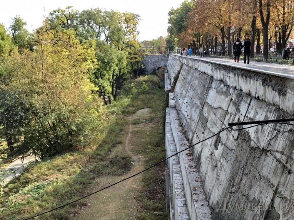 Подпорная каменная стена, высота которой составляет 1 метр, с наличием продольного водоотвода.