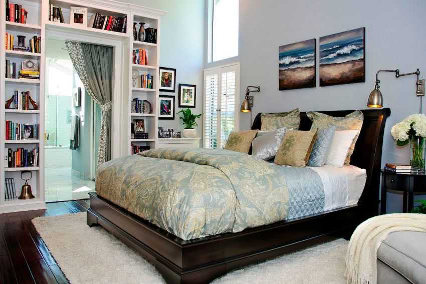 Комнату для сна лучше выделить в помещении, находящемся далеко от кухни, прихожей и санузла. Это даже важнее, чем его размеры. Основными зонами в нем считаются области, где проходит сон и отдых