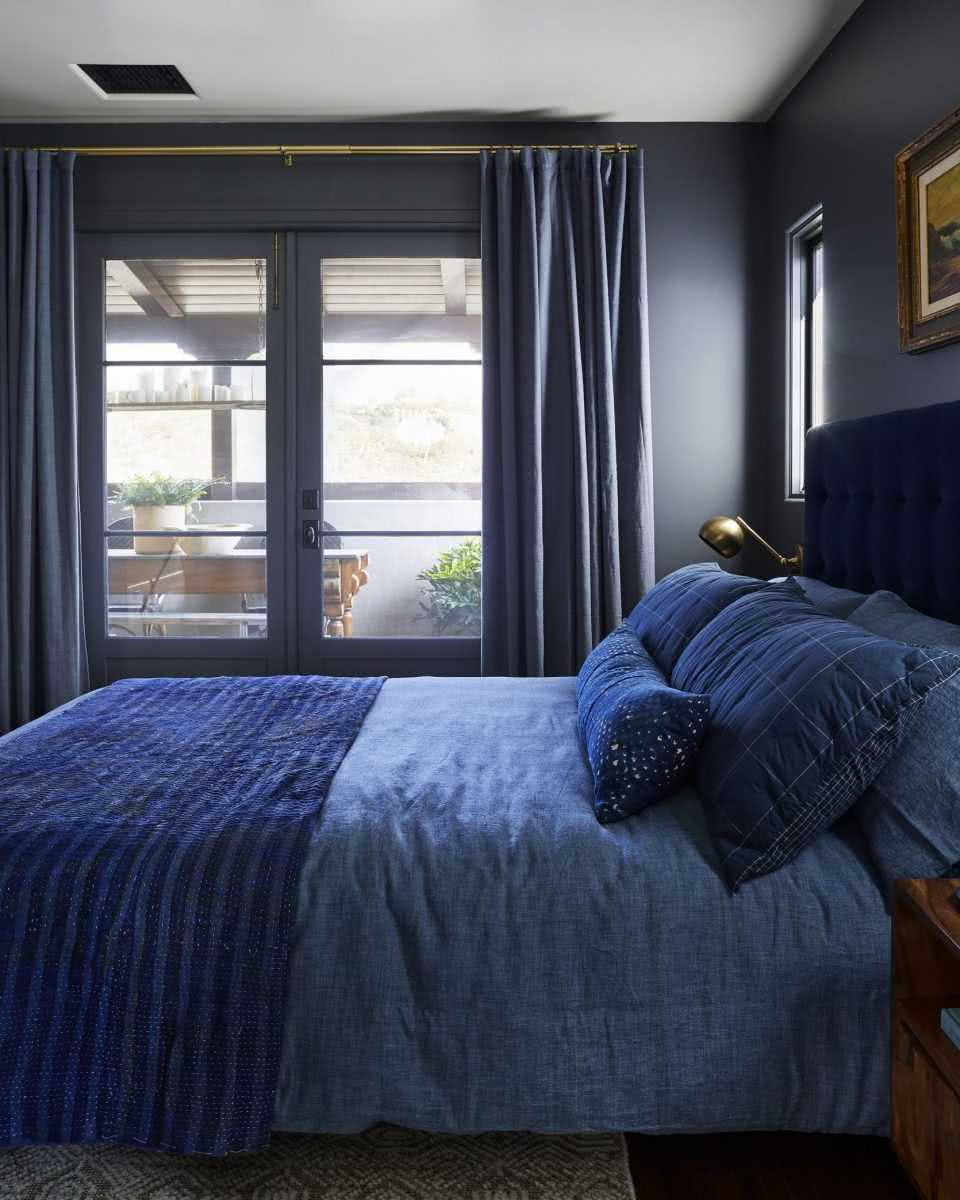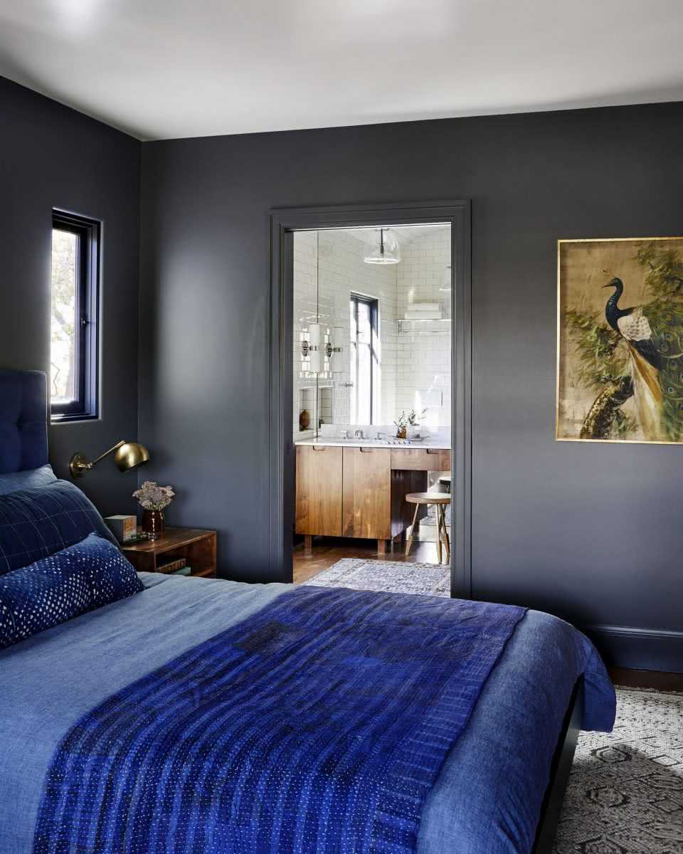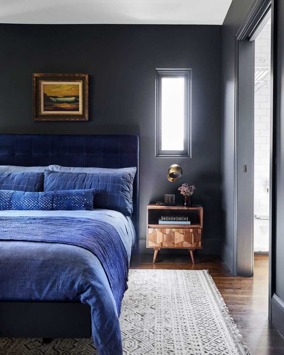 Более важной является первая, с кроватью, иногда занимающей большую часть спальни. Оставшееся пространство (если оно есть), делится методом воображаемой стены, посредством освещения, размещения предметов мебели или отделки стен. Кровать должна быть повернута боком к источнику освещения (например, окну), но не иначе