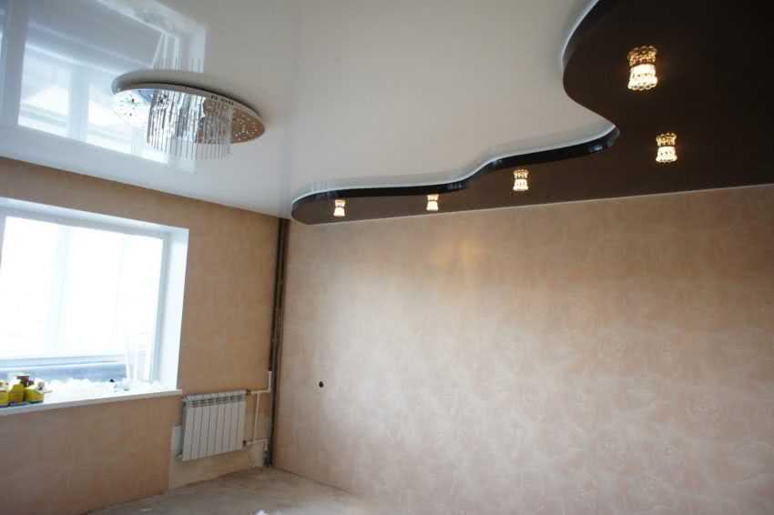 Замечание! Неровности на потолке без люстры скроет подвесная конструкция, оборудованная точечным светом.