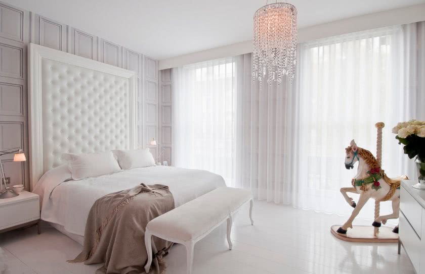 Рассеянный (диффузный) свет создает равномерно освещённое пространство спальни. Максимальный эффект достигается совокупностью нескольких приёмов: