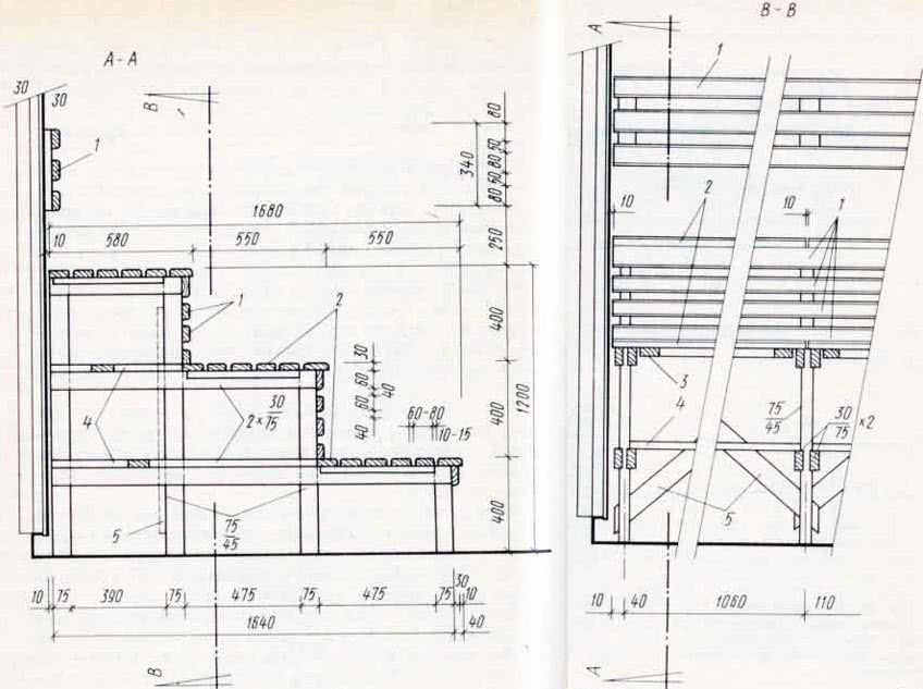 Выше уже говорилось немного о том, что для одноярусного полока оптимальная высота — это 75-90 см. Два условных яруса получаются, если добавить передвижную скамейку. Но гораздо чаще выбор останавливают на стационарной конструкции, состоящей из двух ярусов.