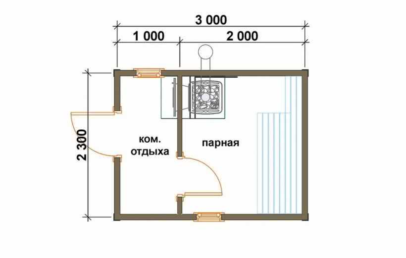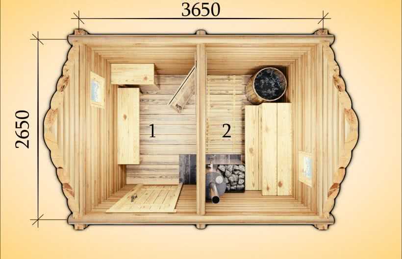 Какого размера должна быть парилка в бане: планировка