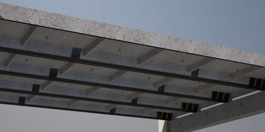 Окончательная конструкция ребристого монолитного перекрытия должна представлять собой плиту, совершенно ровную сверху, и в нижней части имеющую балочную усиливающую конструкцию. Причём плита и балки заливаются одновременно, образуя едино-монолитную конструкцию, из-за чего она набирает максимально возможную прочность.