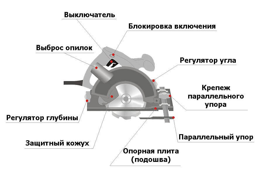 По конструктивному составу пилы, которые общество называет циркулярками, состоят из деталей: