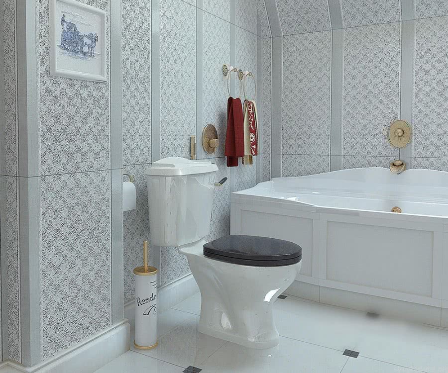 Традиционно отделку санузлов выполняют керамической плиткой. Такое покрытие имеет ряд преимуществ: