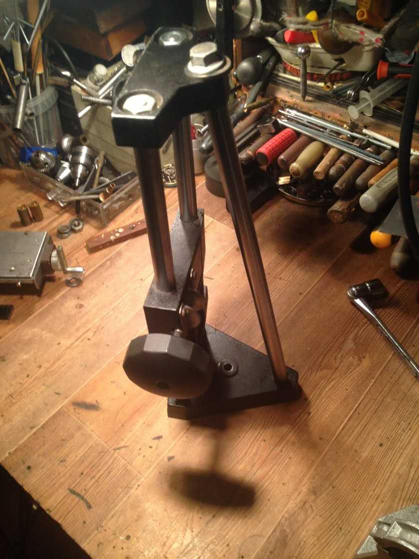 В отличие от первого варианта, данная конструкция получилась довольно громоздкая. Но такой станок однозначно будет мощнее сверлильной стойки из дрели.