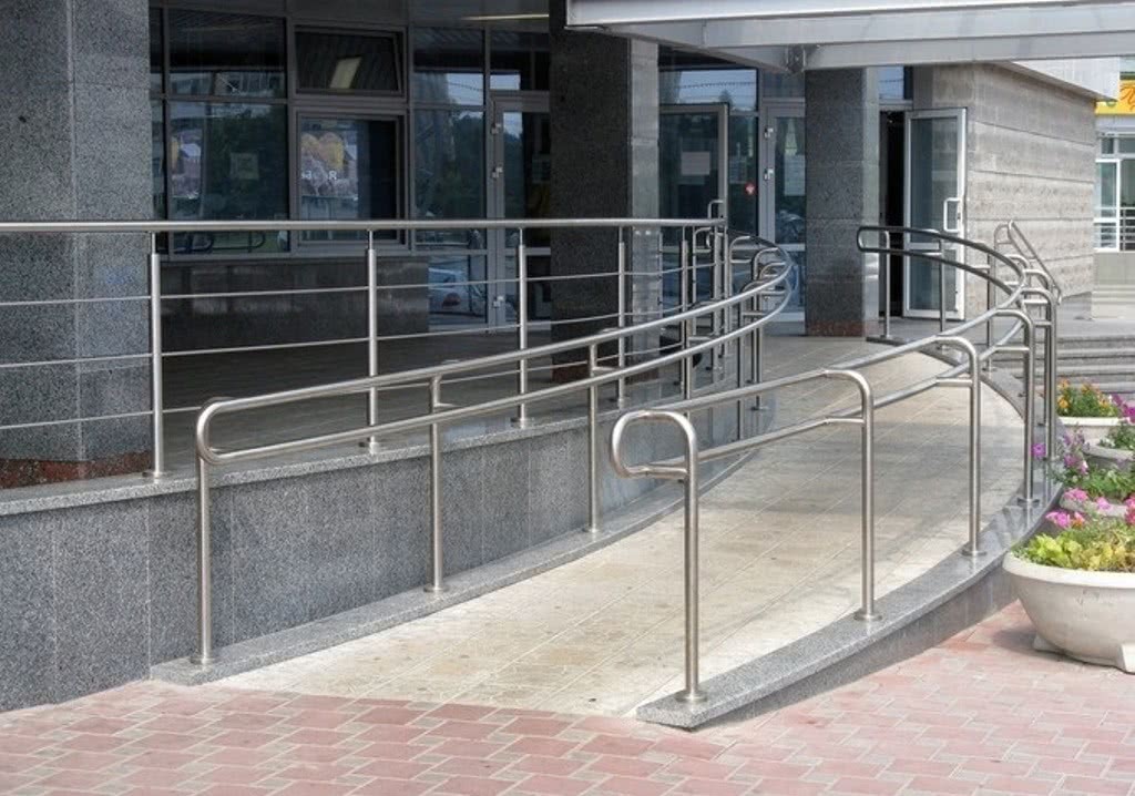 Для повышения комфорта и ликвидации травматизма, конструкции для инвалидов должны оборудоваться металлическими поручнями. Согласно СП 59.13330.2012, перила должны устанавливаться на всех изделиях, высотой более 0,45 м. Кроме того, в документе указаны следующие требования к ограждениям: