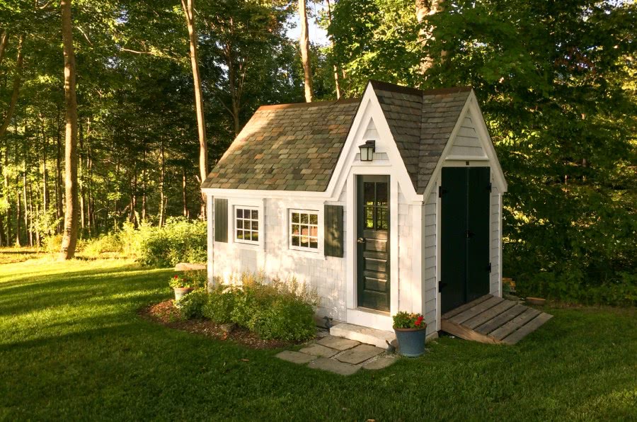Отделка снаружи индивидуальна. Это может быть простое незаметное строение, уютный летний дом с площадкой для вечеринок или прекрасный сказочный домик с палисадником на радость детям – на усмотрение хозяев. Для вдохновения можно посмотреть фото сараев для дачи.