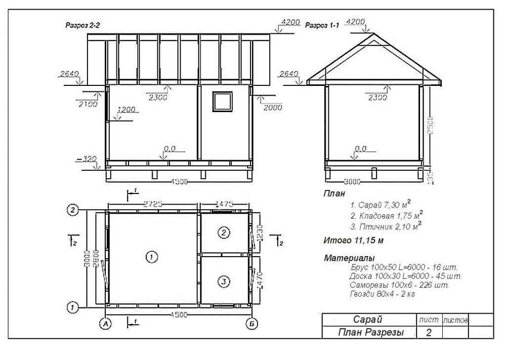 Сарай — капитальное сооружение, поэтому чертеж является базовой основой для как расчета материалов, так и для дальнейшего строительства