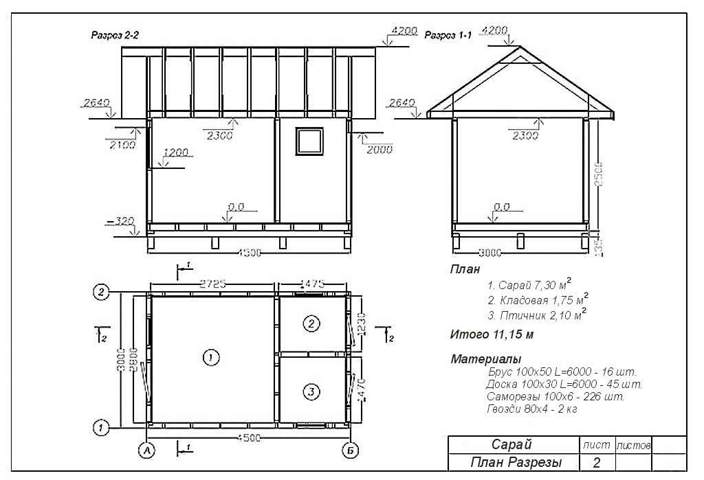 Количество материалов, нужных для построения сарая, удобно рассчитывать в табличной форме.