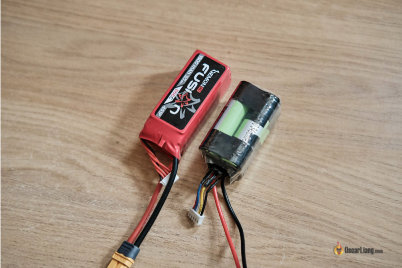 Батарея 4S 18650 весит 203 г, и это около 30 минут полетного времени на моем Flywoo Explorer LR 4 ″: https://oscarliang.com/flywoo-explorer-lr/