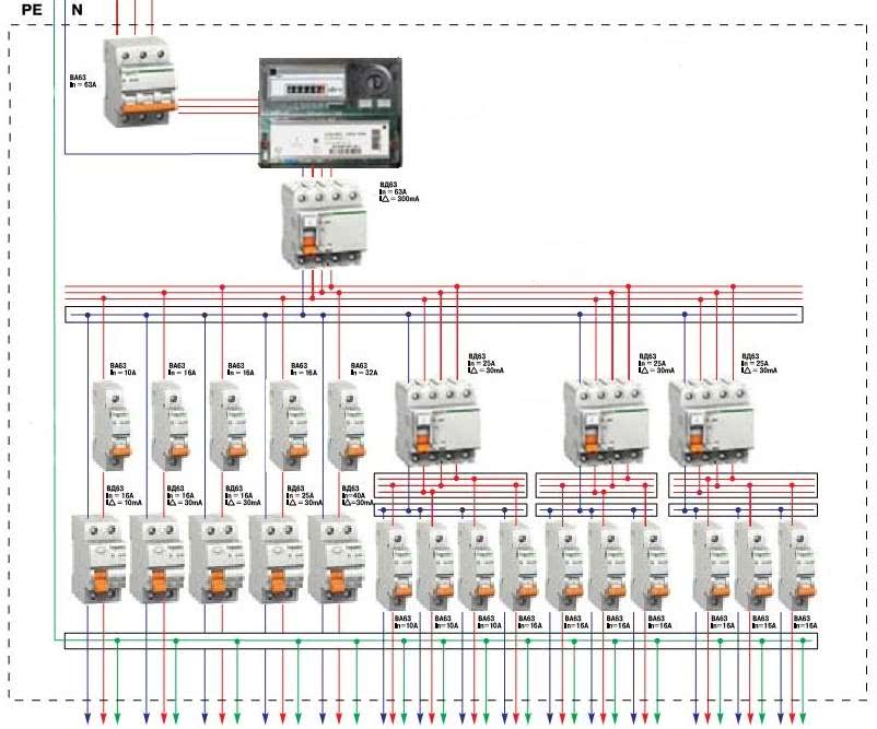 Имея в руках такую схему, гораздо проще разобраться, как правильно собрать электрический щиток.