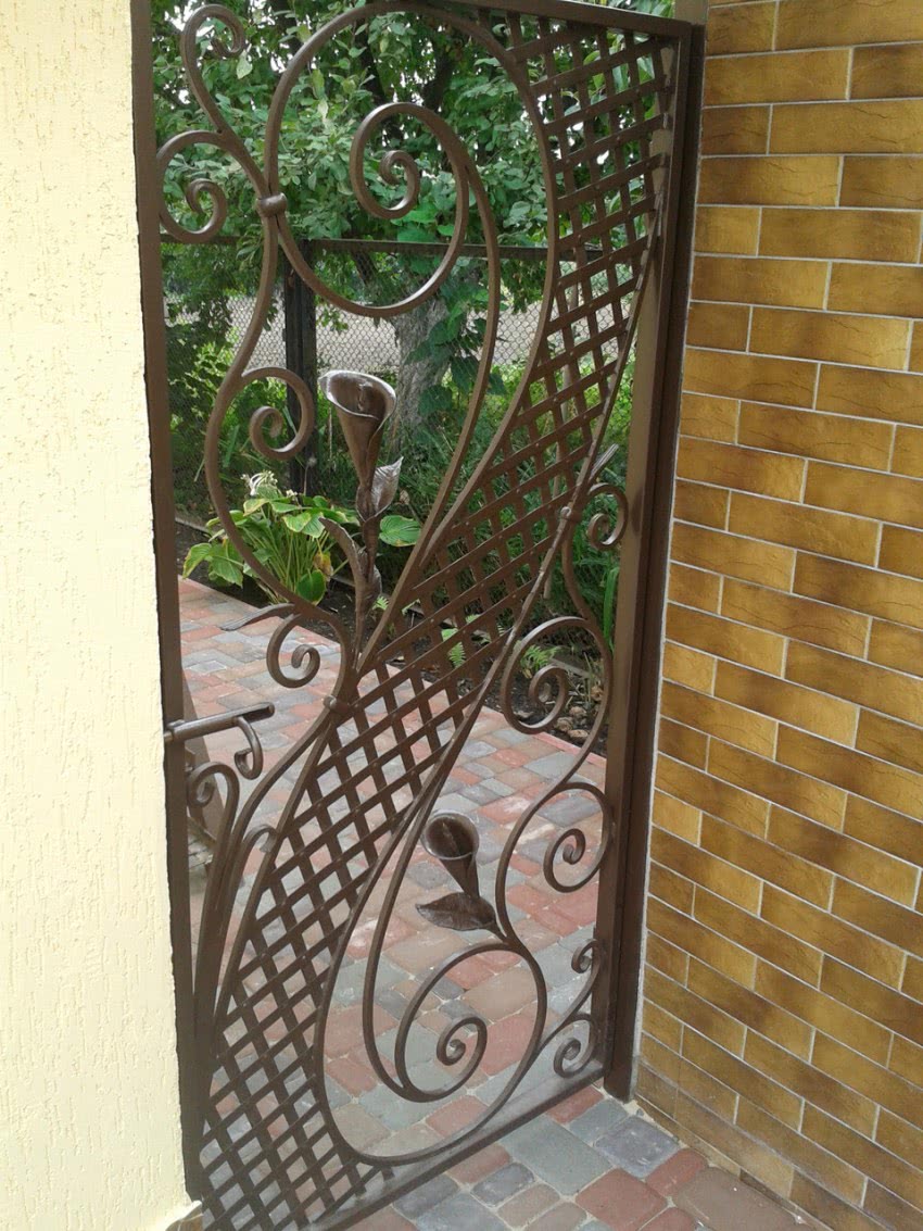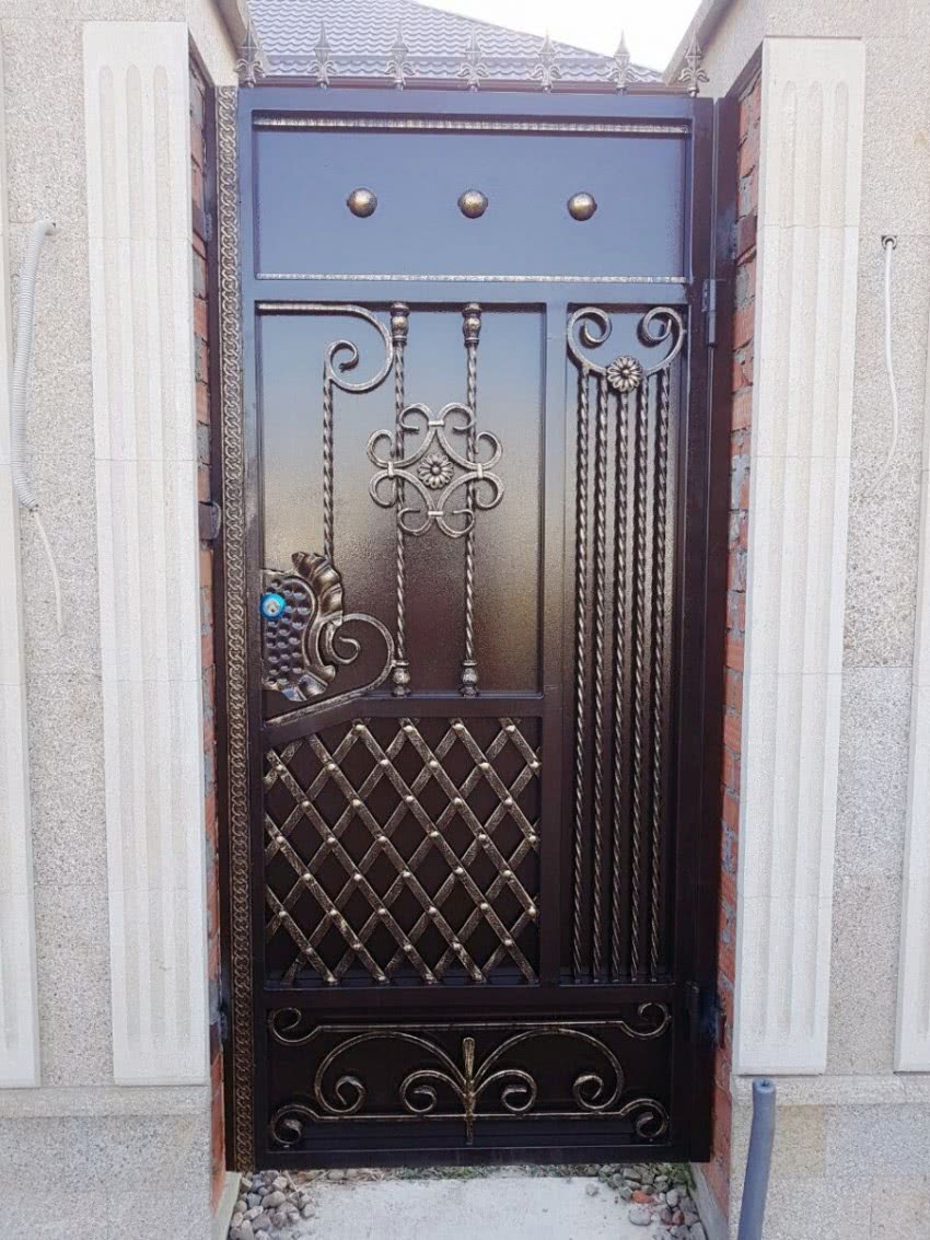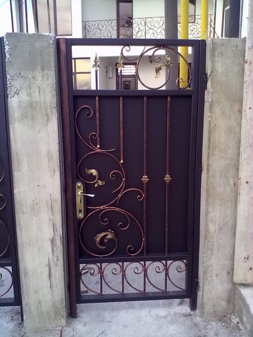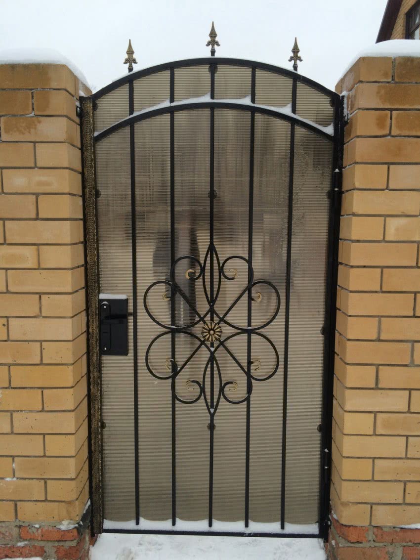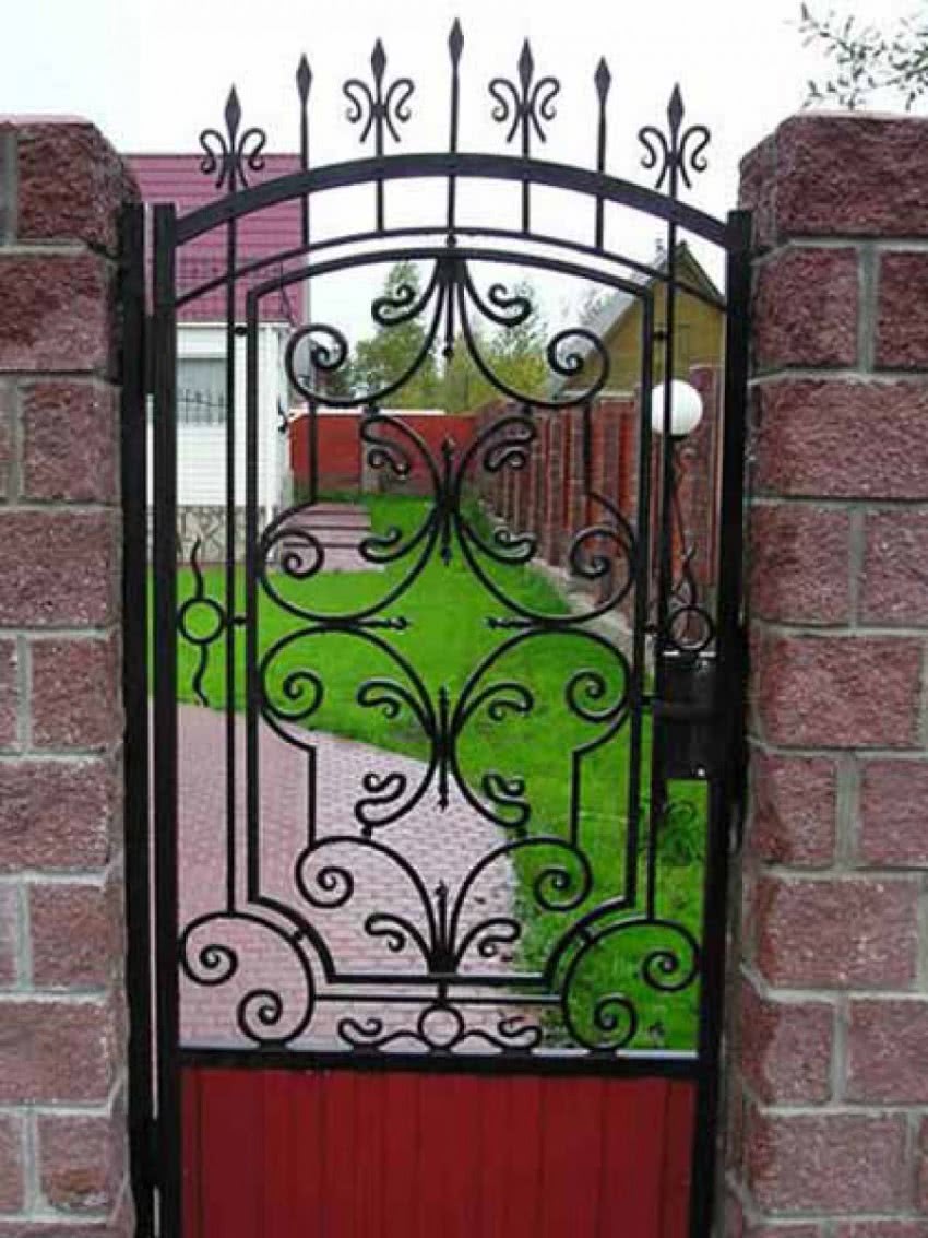 Калитка может устанавливаться отдельно либо встраиваться в створку. Создание воротной створки с установленной калиткой потребует большого опыта. Потребуется ставить каркас внутри конструкции ворот, выбирать рисунок так, чтобы все изделия выглядели как единая композиция. В калитке находится порог. Это нужно учесть, если в доме проживают люди, для которых его наличие может являться серьезной проблемой.