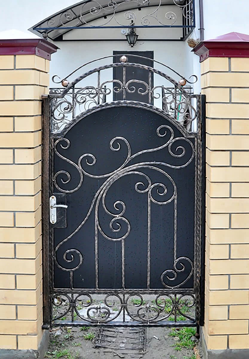Конструкция кованых ворот и калитки оригинального дизайна представлена на фото ниже.