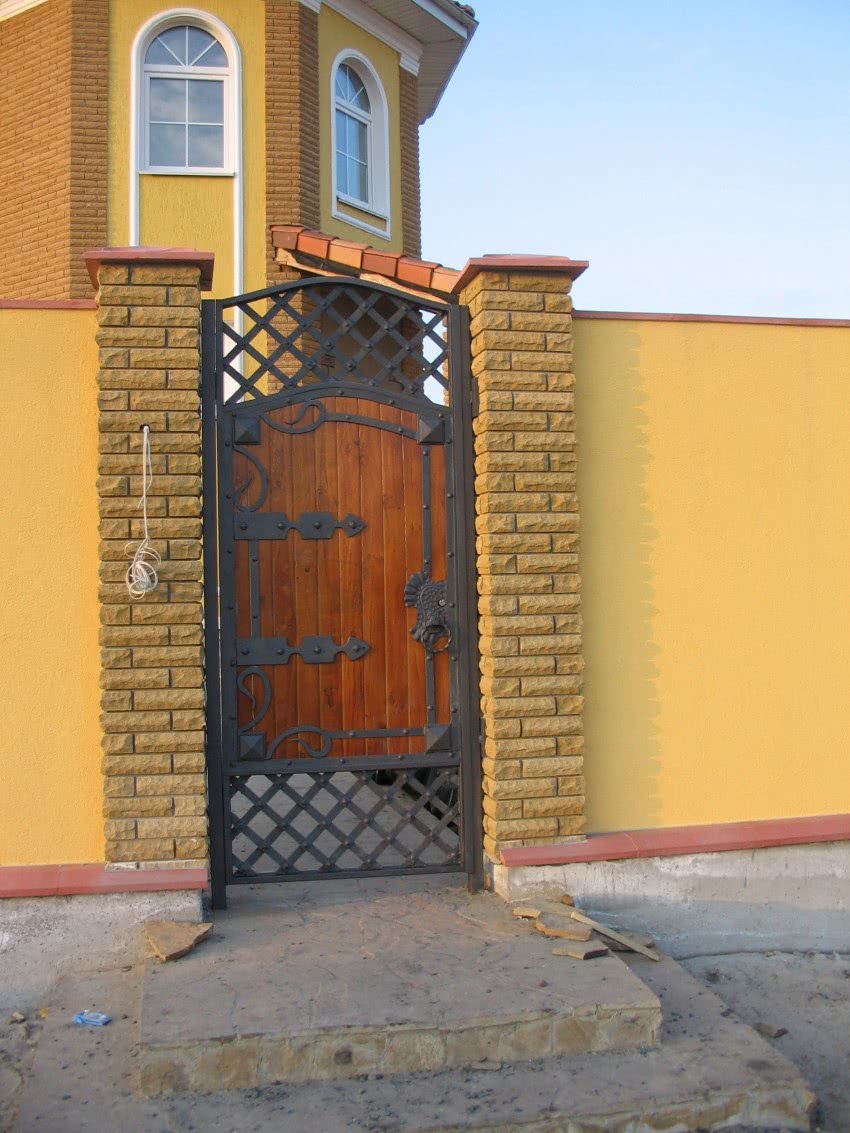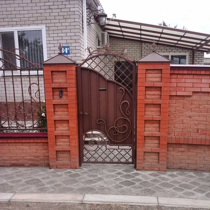 Приятным бонусом служит то, что кованые конструкции прекрасно смотрятся с различными типами заборов: