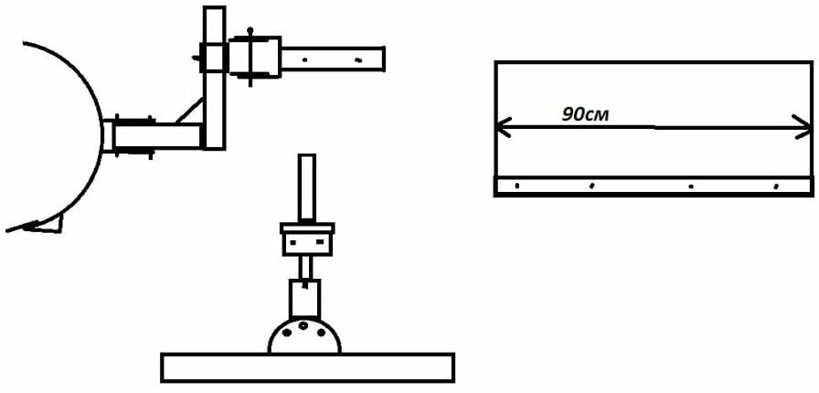 Для сборки своими руками снегоуборочной лопаты на колесах чертеж составлять не обязательно. Однако схема поможет создать лучшее представление о конструкции. Пример чертежа можно найти в тематической литературе или интернете. Лучше всего срисовать схему самостоятельно с реального инструмента. Так будет яснее представление, где и какой узел установлен, как расположен, закреплен.