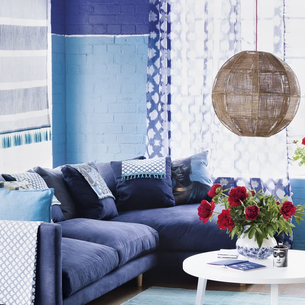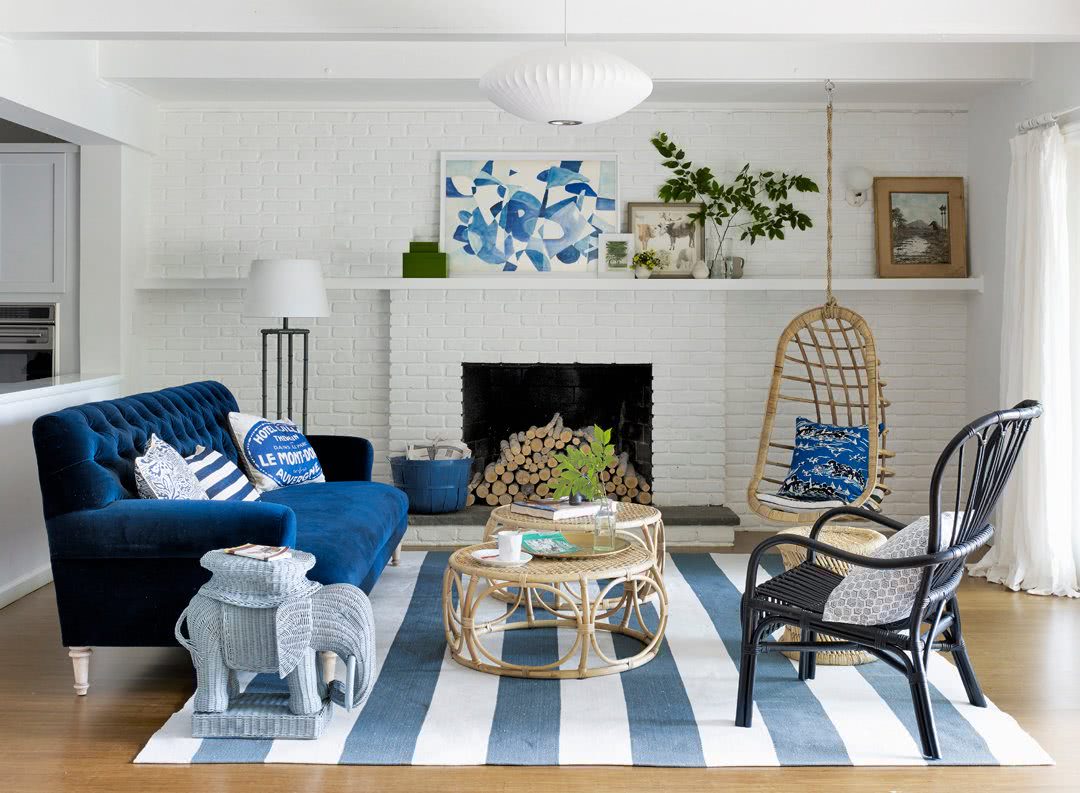 Монохроматическая синяя схема работает прекрасно. С помощью нее помещение можно сделать выразительным и многогранным. Используйте для этой схемы морскую тематику и прибрежную палитру.